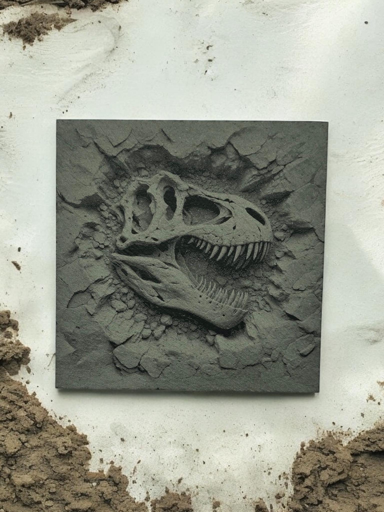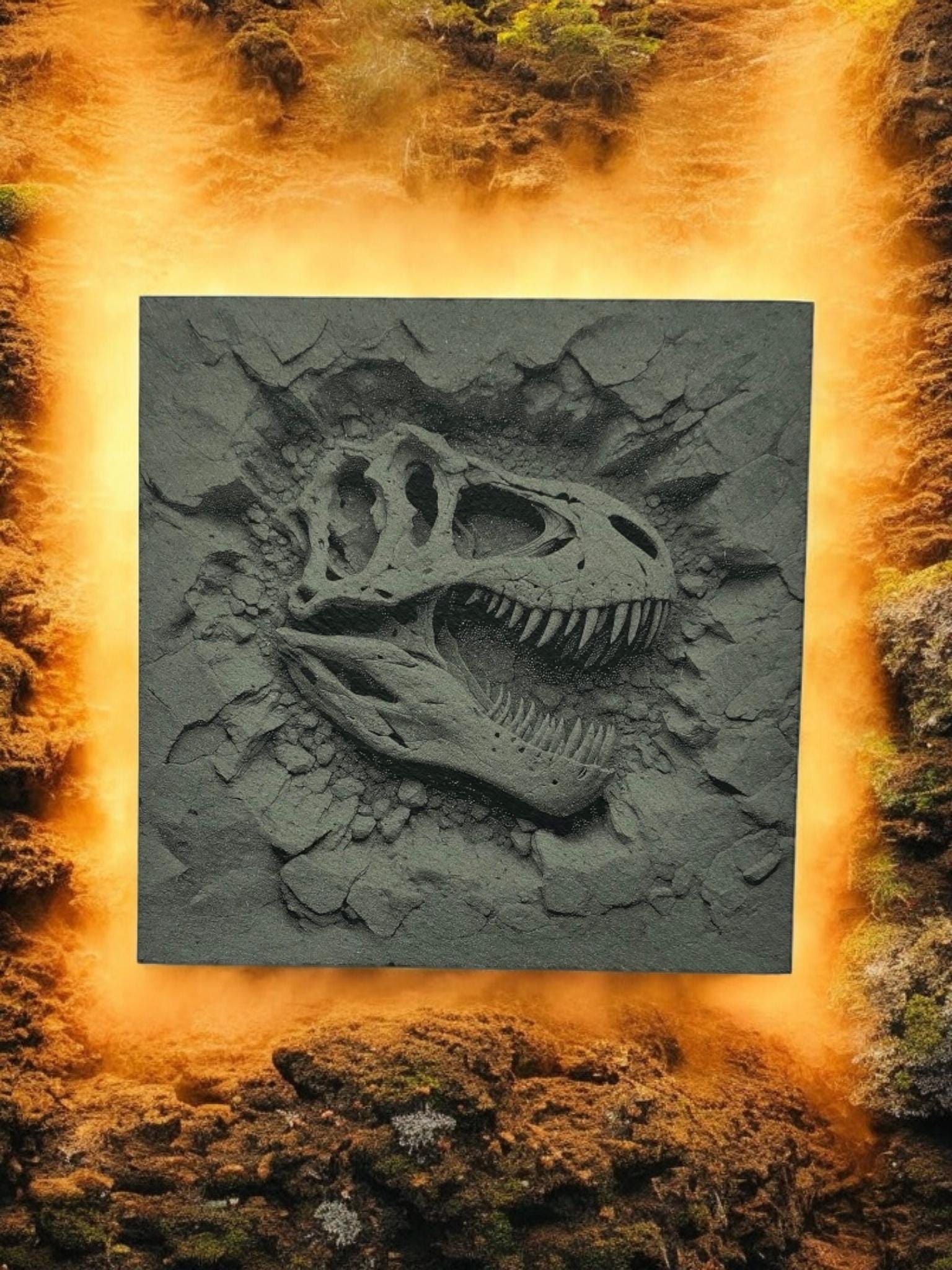 High-quality natural slate Laser-engraved with 3D T-Rex fossil design