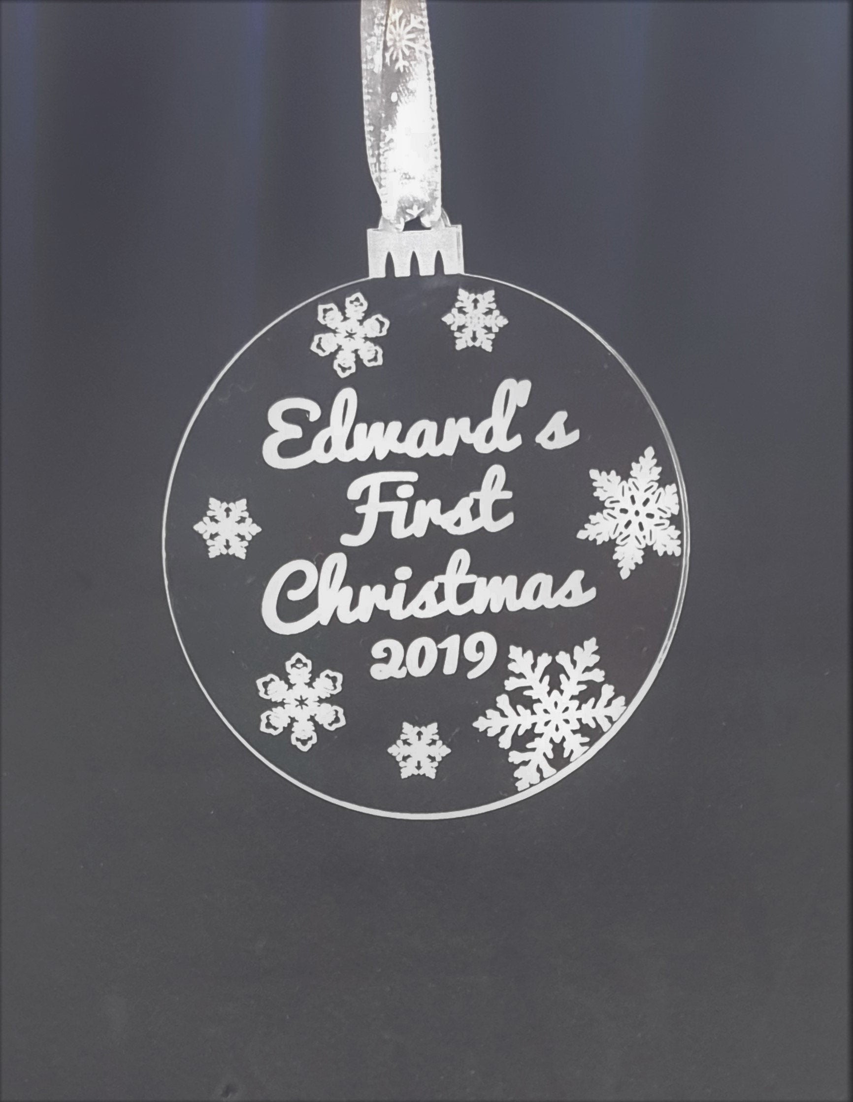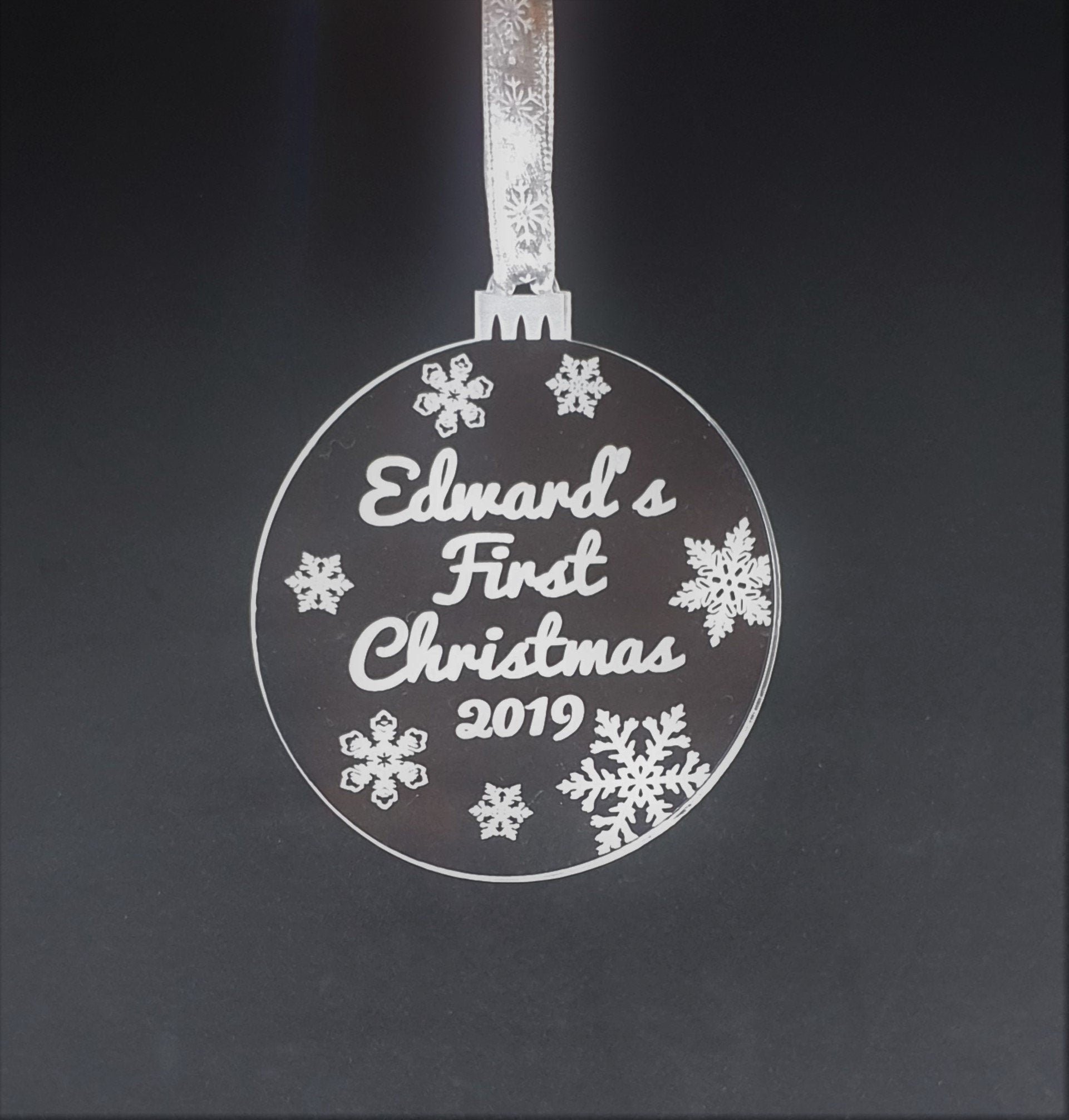 These baby's First Christmas decorations are the perfect gift or stocking filler. Each decoration is 8cm wide and is made from 3mm acrylic and precisely lasered with your choice of name.