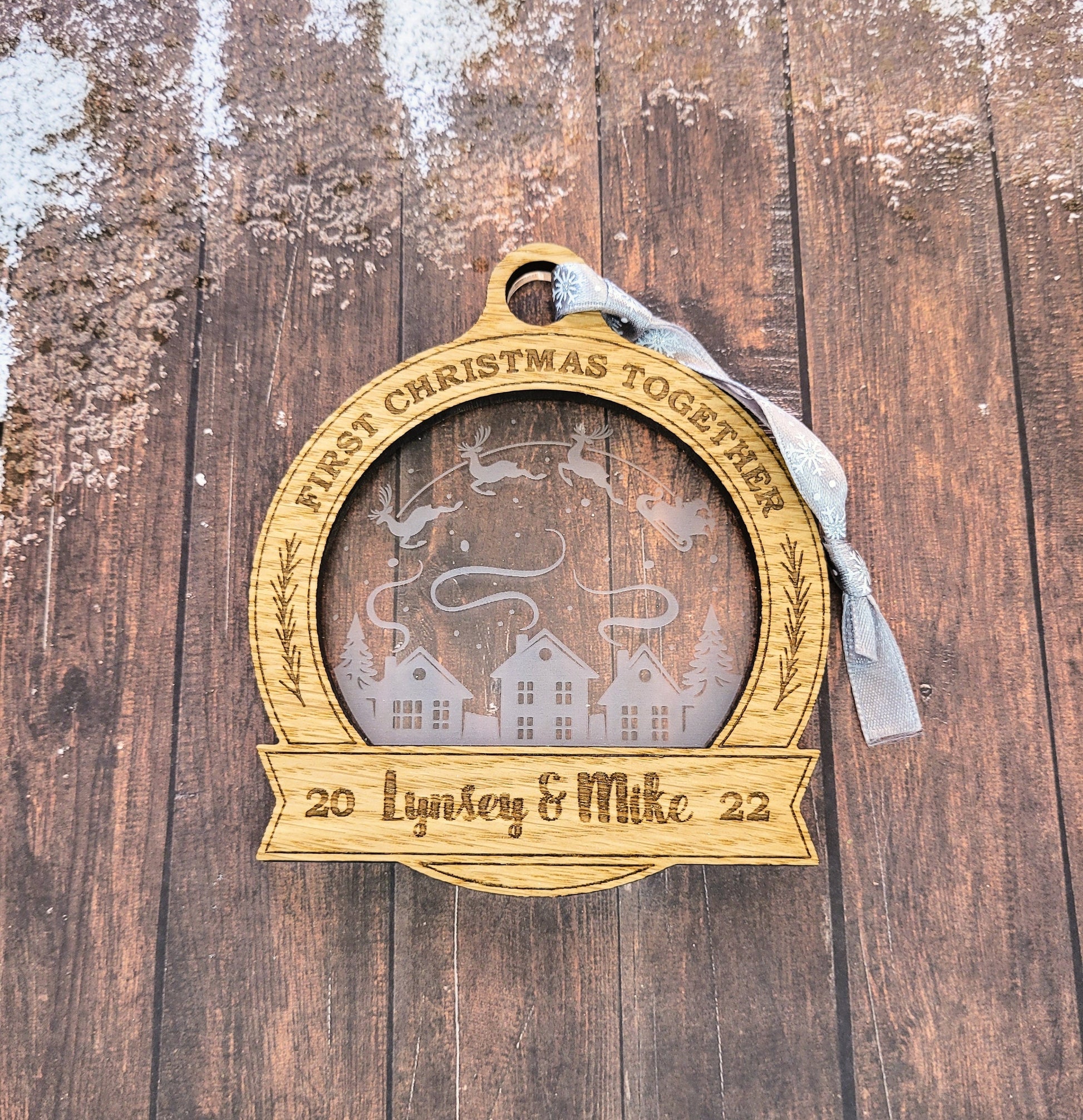 Our beautiful laser-cut tree decorations are a perfect gift for a new couple or as a unique gift to your partner. The ornament is made from rustic oak wood and clear acrylic, each one personalised with names and years. Just let us know the details you wish to be included, and add this gorgeous gift to your basket.